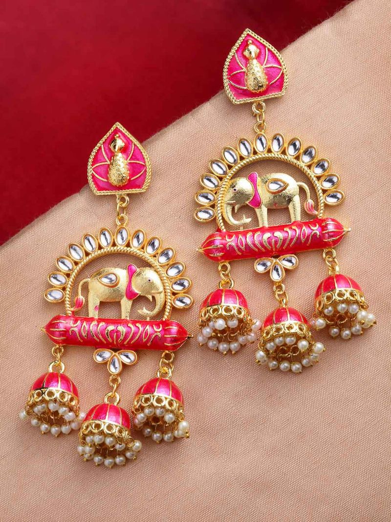 Elephant Shape Pink Jhumki Drop Earrings for Womens