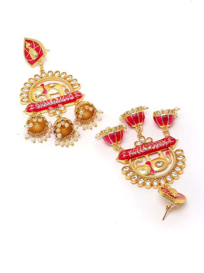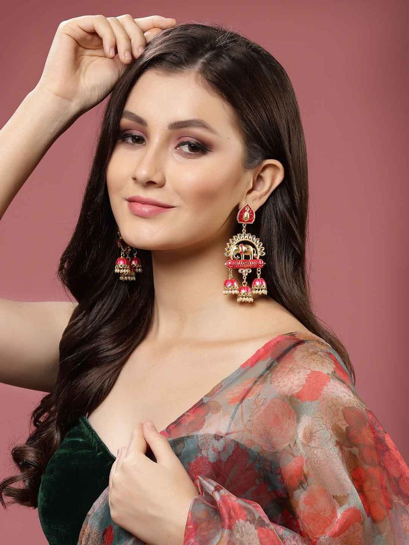 House Of Ree Elephant Shape Pink Jhumki Drop Earrings for Womens | Women | Girls ER115