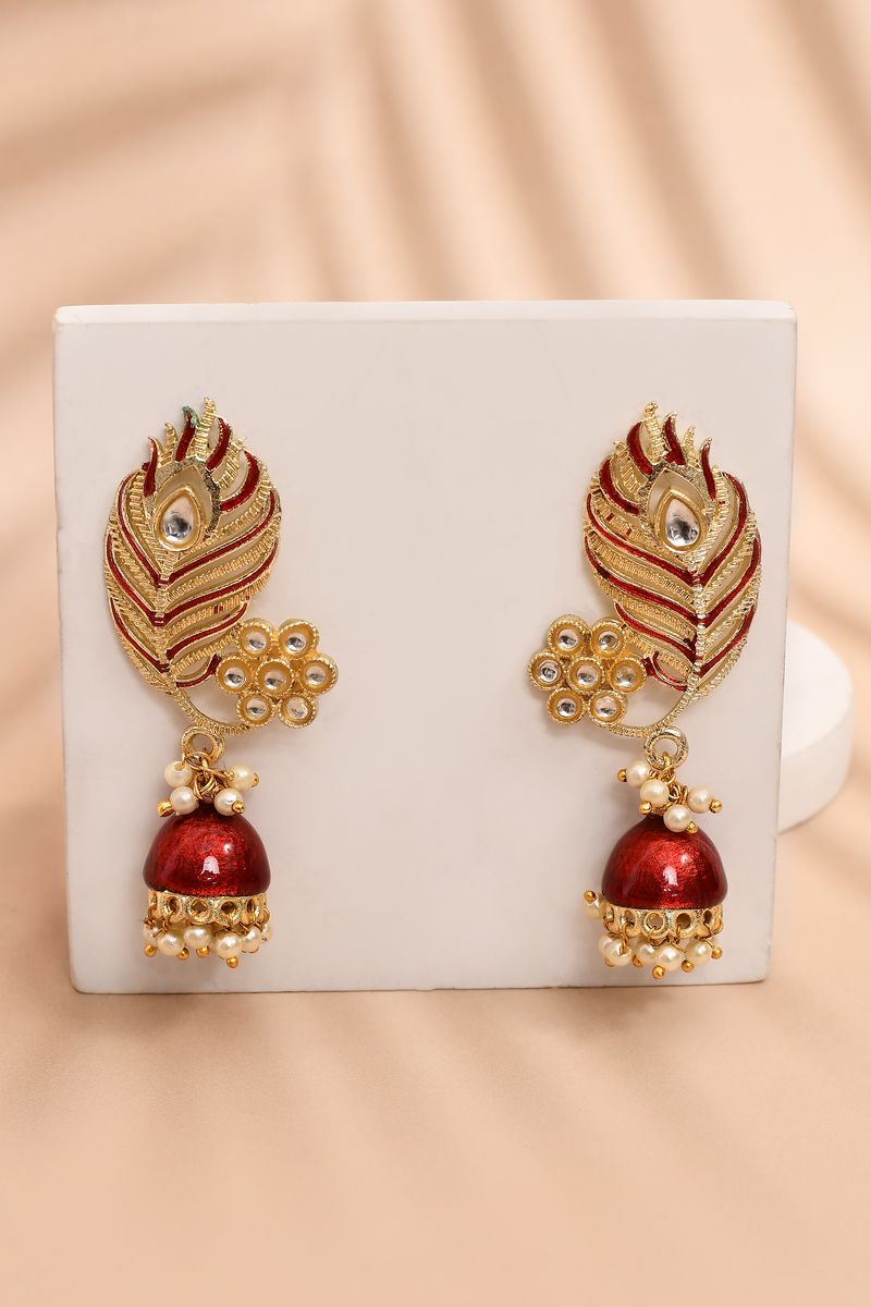 Peacock Feather Pattern Maroon Jhumki Drop Earrings for Womens
